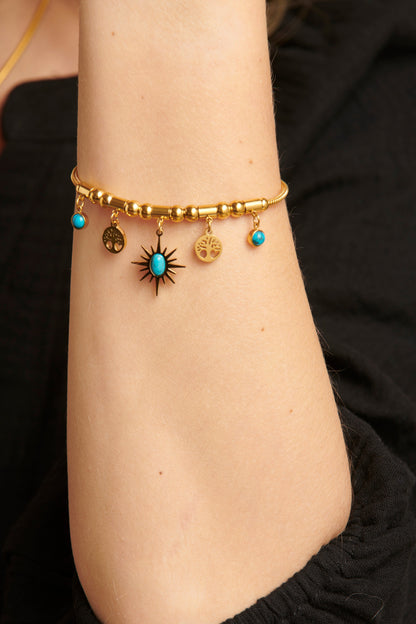 Das Set besteht aus einem Armband und einer Halskette, die mit hübschen, filigranen Charms verziert sind. Beide Accessoires sind aus hochwertigem Titanstahl und Turmalin gefertigt, bieten einen hohen Tragekomfort und eine elegante Optik.